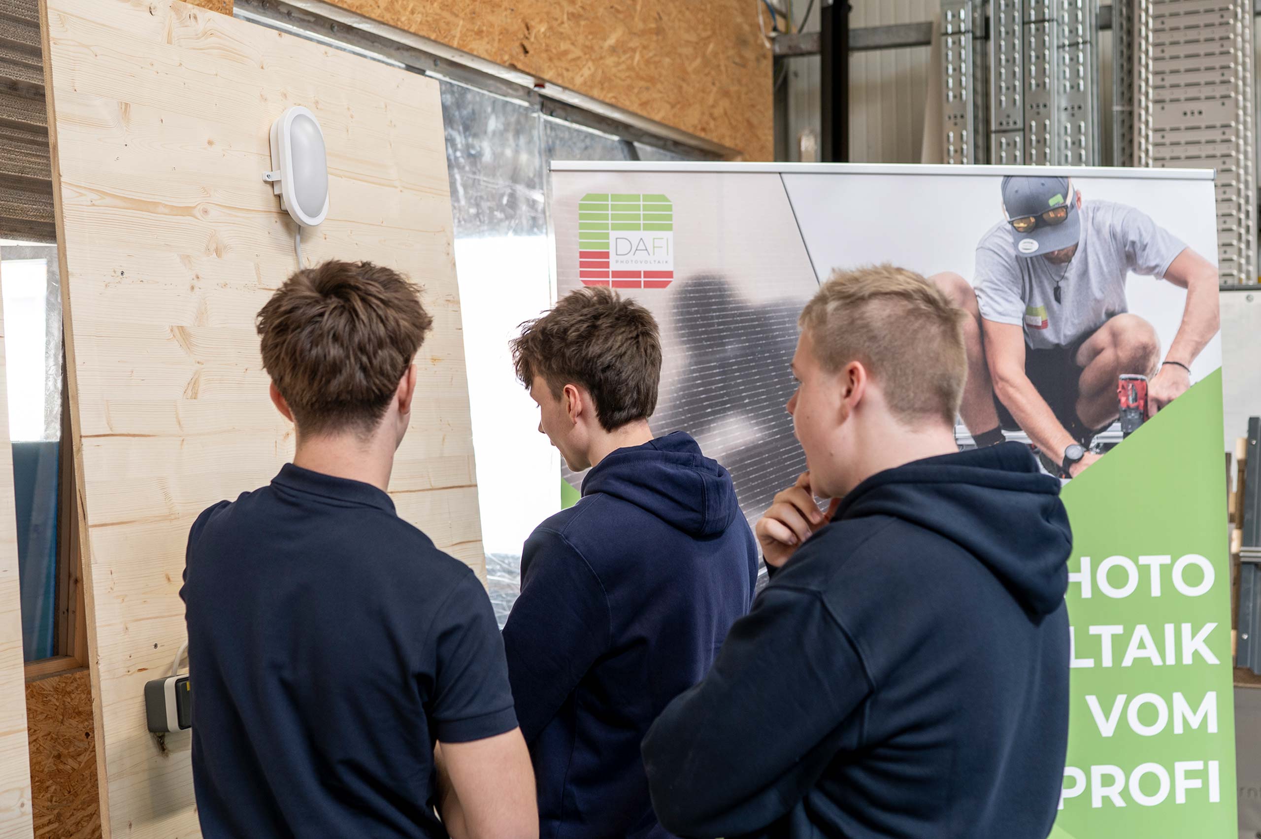 Bei Führungen durch das Unternehmen konnten die Besucherinnen und Besucher verschiedene Bereiche entdecken. Von der Planung über die Technik bis hin zur Umsetzung von Photovoltaiklösungen. Auch unsere Lehrlinge waren vor Ort und berichteten aus erster Hand über ihren Arbeitsalltag, ihre Ausbildung und ihre Erfahrungen bei DAfi.